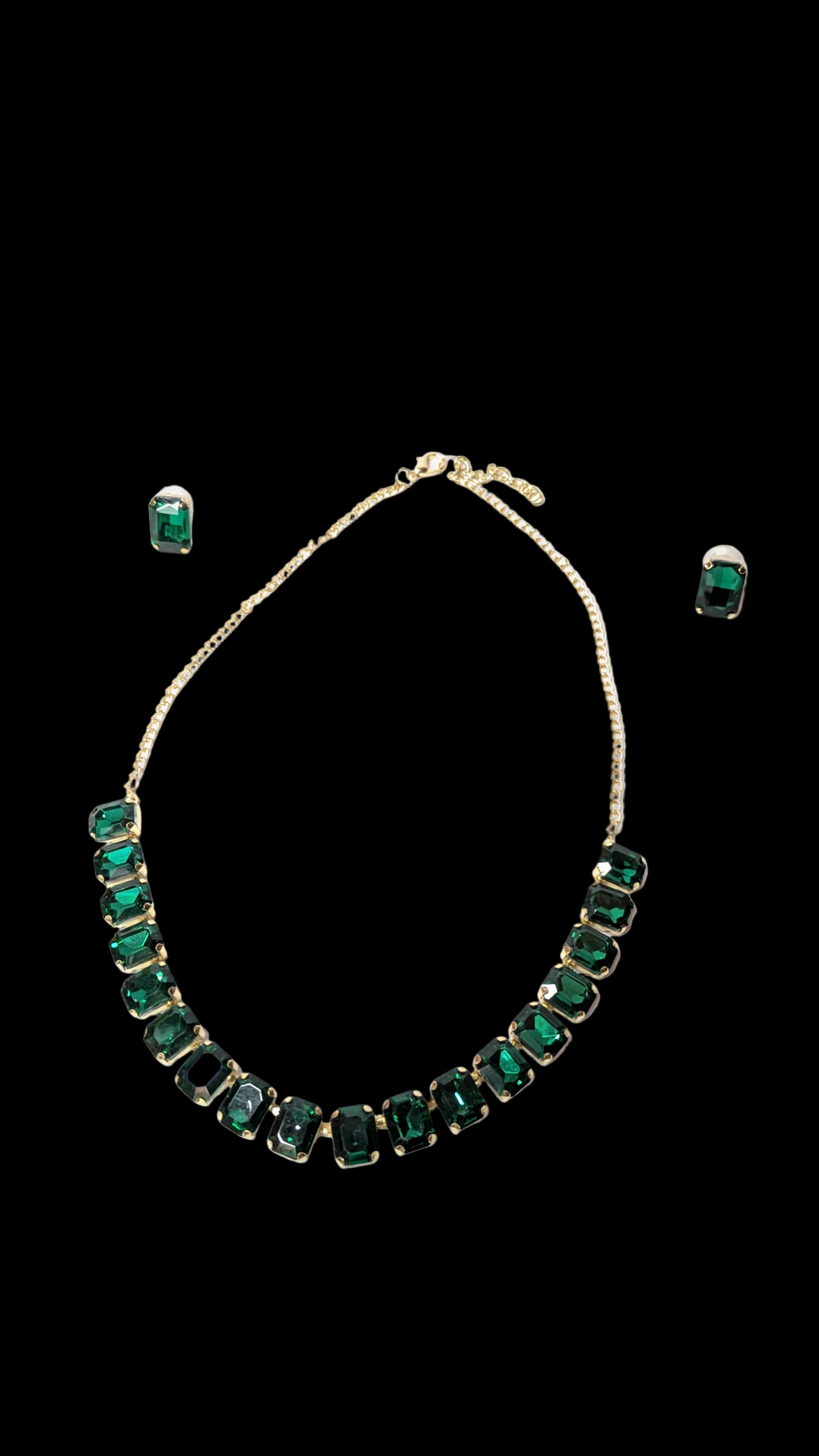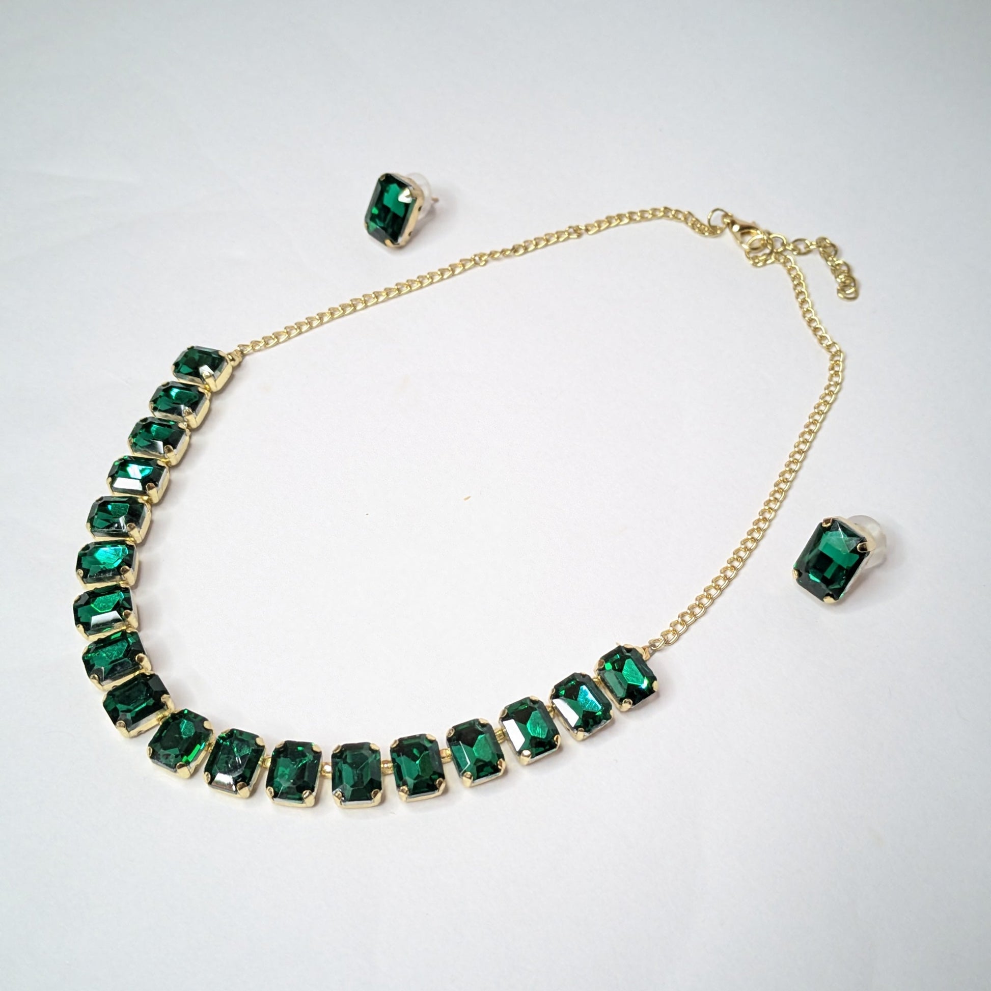 Elevate your style with the stunning SATI Aesthetics Single-Line Emerald Necklace Set. This elegant set features a single-line necklace of vibrant emeralds, perfectly complemented by a pair of matching earrings. Designed to capture attention with its simple yet striking beauty, this set is ideal for adding a pop of rich color to any look, from a formal event to a special evening out.